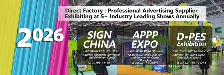 D·PES Exhibition သည် တရုတ်နိုင်ငံတောင်ပိုင်းရှိ ပြင်ပကြော်ငြာပစ္စည်းကိရိယာများအတွက် ထိပ်တန်းအထူးပြုပွဲဖြစ်ပြီး နှစ်စဉ်ပြသသူ 600+ နှင့် လာရောက်ကြည့်ရှုသူ 35,000+ တို့ကို ဆွဲဆောင်လျက်ရှိသည်။ ၎င်းသည် ကမ်းခြေအလံအခြေစိုက်စခန်းများ၊ ဆုတ်ခွာနိုင်သောနဖူးစည်းစာတန်းများနှင့် သယ်ဆောင်ရလွယ်ကူသော မျက်နှာပြင်တပ်ဆင်မှုများကဲ့သို့သော အရာများ—လက်တွေ့အသုံးပြုနိုင်သော ထုတ်ကုန်များအကြောင်းဖြစ်သည်။ ဤနေရာတွင် လူစုလူဝေးအများစုမှာ ပြင်ပကြော်ငြာကန်ထရိုက်တာများ၊ ပွဲစီစဉ်သူများ၊ တပ်ဆင်ရန် မြန်ဆန်ပြီး လေ၊ နေနှင့် မိုးဒဏ်ခံနိုင်သော ကိရိယာများ လိုအပ်သည့် လက်လီအမှတ်တံဆိပ်မန်နေဂျာများဖြစ်သည်။ D·PES တွင် Earth Display သည် ၎င်း၏ 360 Rotate Cross Base နှင့် လေဒဏ်ခံနိုင်သော feather အလံများ၏ တိုက်ရိုက်နမူနာများကို ပြသမည်ဖြစ်ပြီး ပြင်ပပရိုမိုးရှင်းလှုပ်ရှားမှုများပါရှိသည့် ပုံမှန်ခေါင်းကိုက်မှုများကို ပြုပြင်ပေးမည်ဖြစ်သည်။