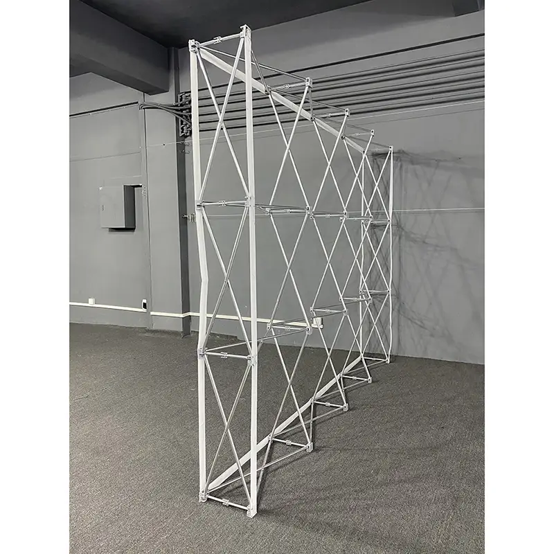 ဤ pop up နံရံဘောင်ကို ပေါ့ပါးသော်လည်း ခိုင်ခံ့သော အလူမီနီယမ်ဖြင့် ပြုလုပ်ထားသည်။ ၎င်း၏ modular ဒီဇိုင်းကို tools များမပါဘဲစုဝေးနိုင်ပါတယ်။ ၎င်း၏ပြောင်လက်သောငွေရောင်အသွင်အပြင်သည်အလွန်ကျွမ်းကျင်သည်။ ချိတ်ဆက်ထားသော အစိတ်အပိုင်းများသည် တပ်ဆင်ခြင်းနှင့် ဖယ်ရှားခြင်းအတွက် အလွန်အဆင်ပြေစေသည်။ ဖရိမ်သည် ပုံစံကို ခိုင်မာစွာ ပြုပြင်နိုင်ပြီး အထူးသဖြင့် မျက်လုံးကို ဖမ်းစားနိုင်သော ချောမွေ့သော မျက်နှာပြင်ကို ဖန်တီးနိုင်သည်။ အမျိုးမျိုးသော ပွဲများတွင် သင်၏ အမြင်ဆိုင်ရာ စျေးကွက်ချဲ့ထွင်မှုကို ပိုမိုထူးချွန်စေလိုလျှင် ဤထုတ်ကုန်သည် ကျိန်းသေ ယုံကြည်စိတ်ချရပါသည်။